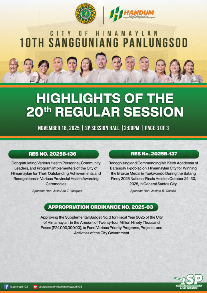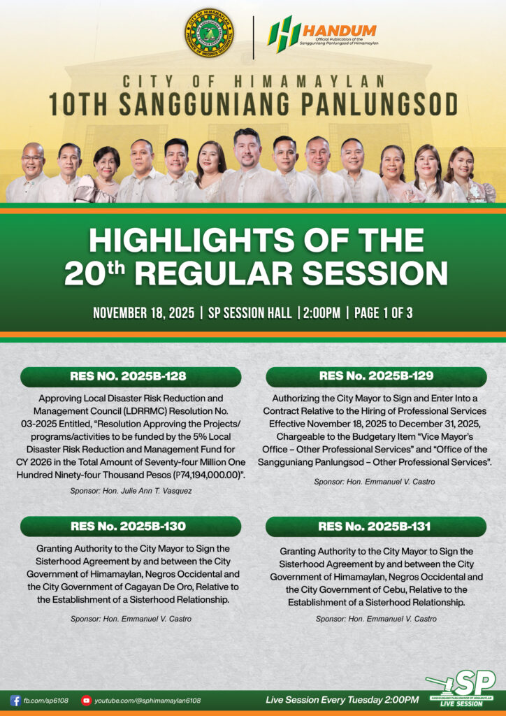 Highlights of the 20th Regular Session | 10th Sangguniang Panlungsod | 18 November 2025.