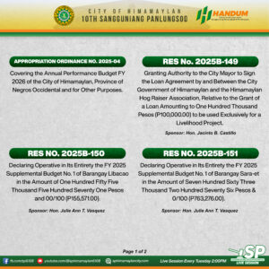 Covering the Annual Performance Budget FY 2026 of the City of Himamaylan, Province of Negros Occidental and for Other Purposes.