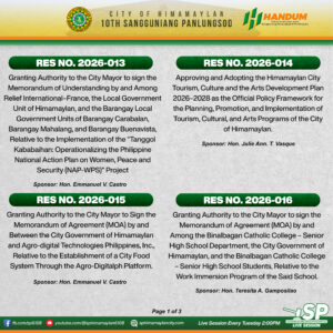 Approving and Adopting the Himamaylan City Tourism, Culture and the Arts Development Plan 2026β2028 as the Official Policy Framework for the Planning, Promotion, and Implementation of Tourism, Cultural, and Arts Programs of the City of Himamaylan.
