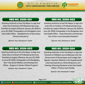 Granting Authority to the City Mayor to sign and enter Into a Contract of Professional Services, Certified as Urgent, Effective January 20, 2026 to June 30, 2026, Chargeable to the Budgetary Item βcity Health Office β Early Detection and Intervention of Non-communicable Diseasesβ.